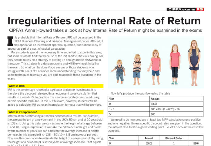 In the latest PQ magazine she reveals many students struggle with the concept, so sets out clearly how sitters can approach an IRR question in the exam.